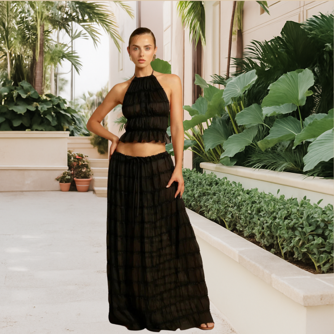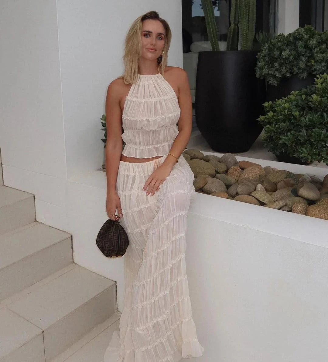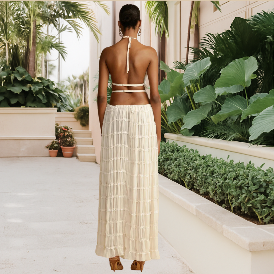I took the skirt set + white top for my vacation: a favorite. It looks effortlessly dressed, and it doesn't stick to the skin in the heat. I recommend it 100%!