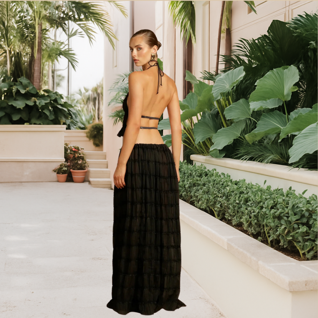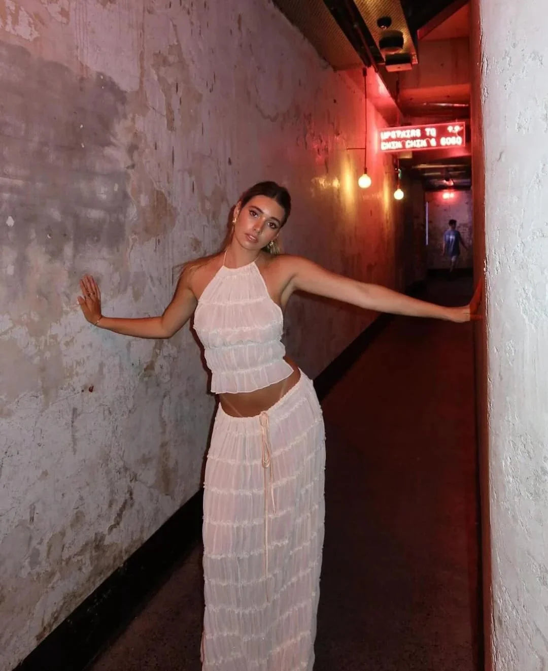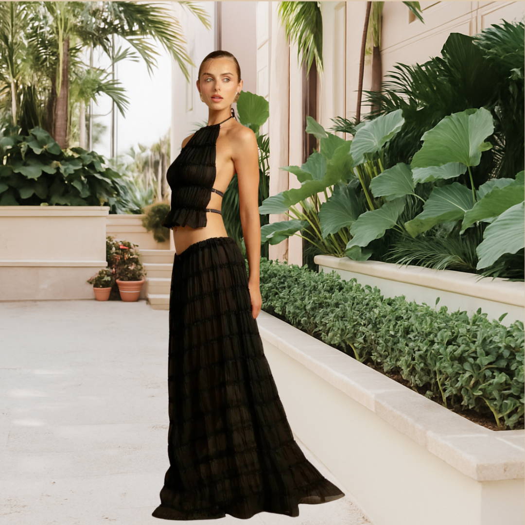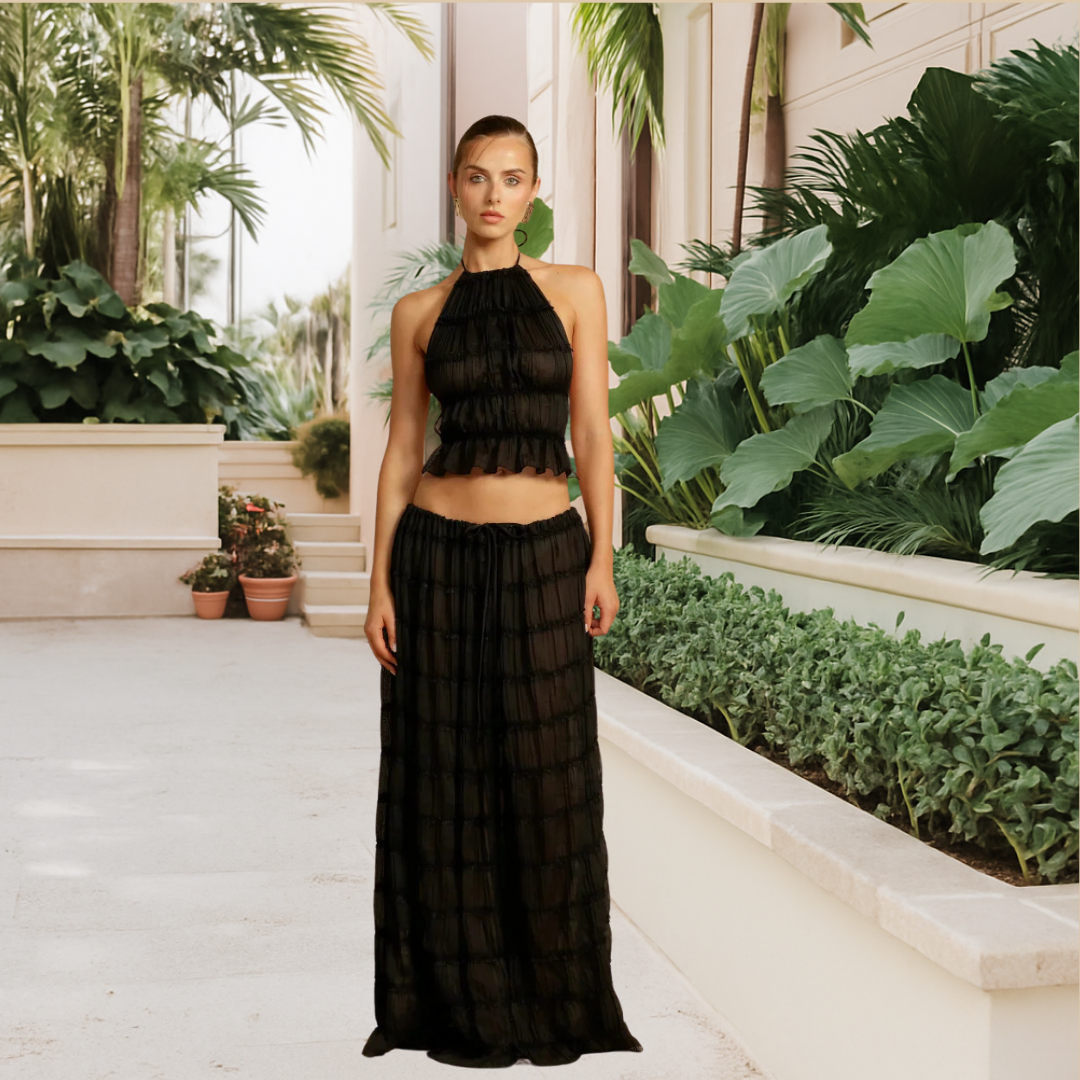 I took the skirt set + white top for my vacation: a favorite. It looks effortlessly dressed, and it doesn't stick to the skin in the heat. I recommend it 100%!