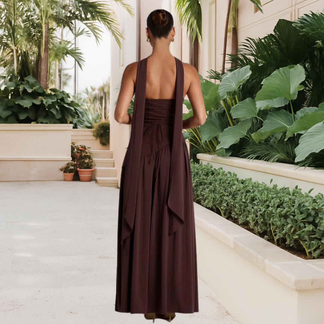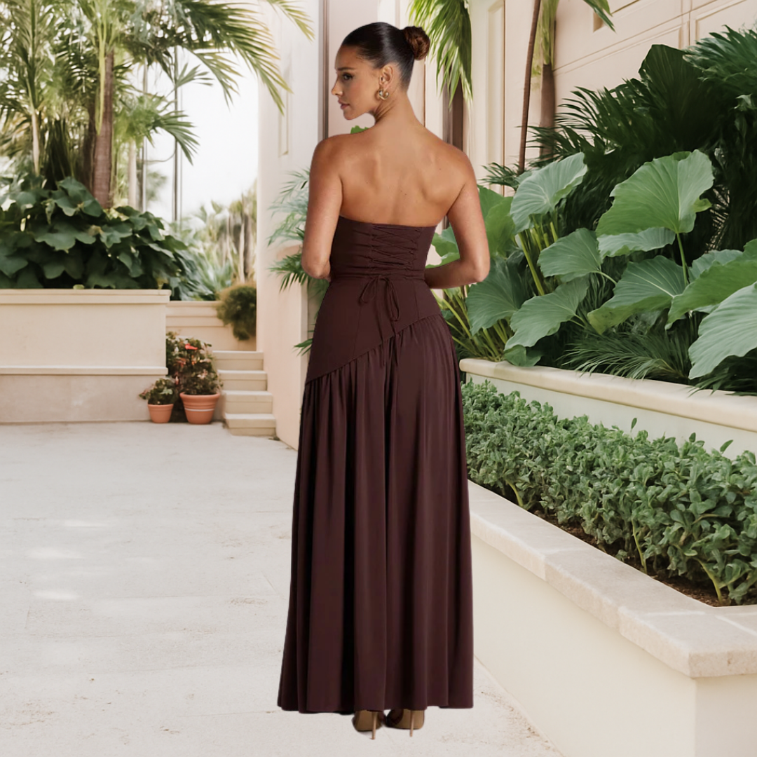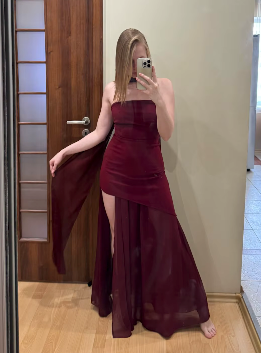 Its soft fabric hugs the body without squeezing, and its high slit adds an irresistible touch of glamour.