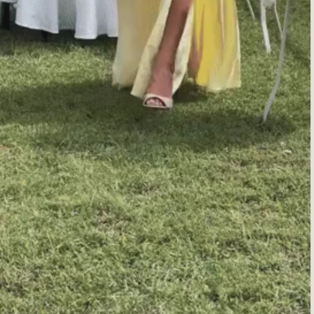 The dress is beautiful, the color is exactly like in the photos. Very pleasant to wear, I put it for a wedding and everyone complimented me!